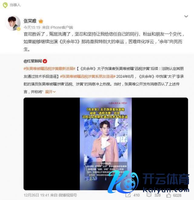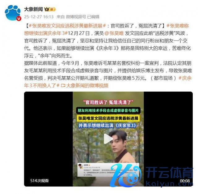一句"讼事胜诉了开云体育,冤屈洗清了",演员张昊唯在 12 月 27 日的发文,为握续近一年半的"逃税涉黄"风云画上了法律句号。但这句看似庸俗的吩咐,背后却是一个被坏话澈底颠覆的东谈主生脚本。