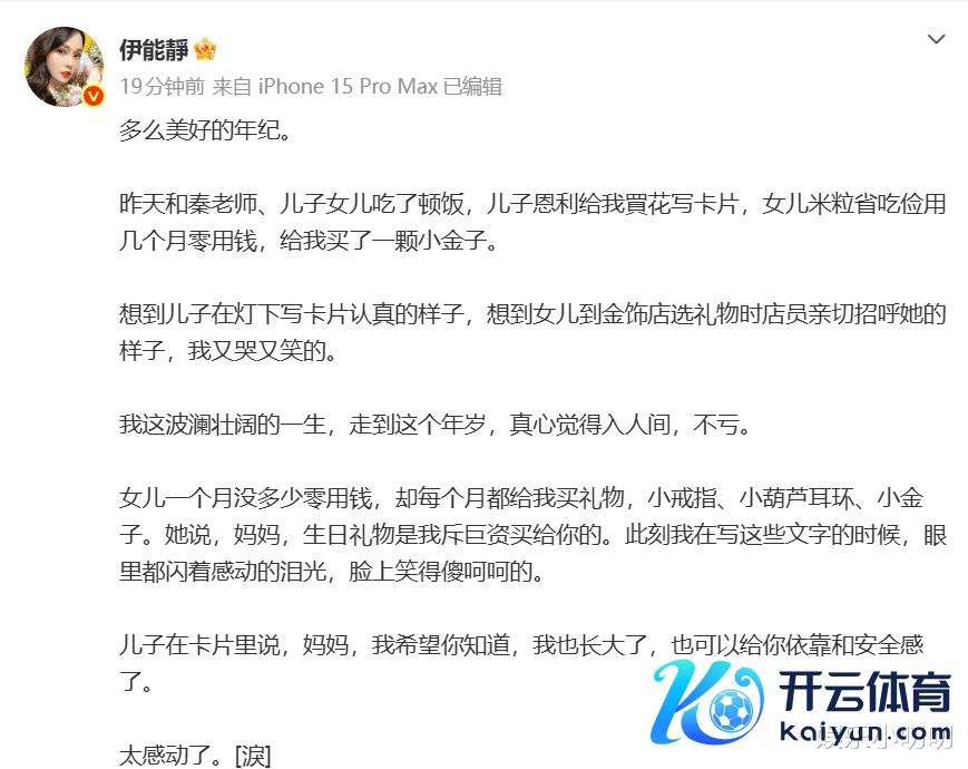 伊能静在文均共享了女儿恩利给我方准备的贺卡,恩利示意我方照旧长大了,能给姆妈依靠和安全感了。动作母亲看到女儿写给我方这么的讲话,真是会很感动吧。女儿米粒用我方的零用钱给我方买了一颗小金子,何况照旧省吃俭用了好几个月的零用钱。也难怪伊能静示意我方写到这的技巧脸上挂着感动的泪水,却又在傻呵呵的笑。伊能静晒出和儿女的合影,景况真是是超等绝!